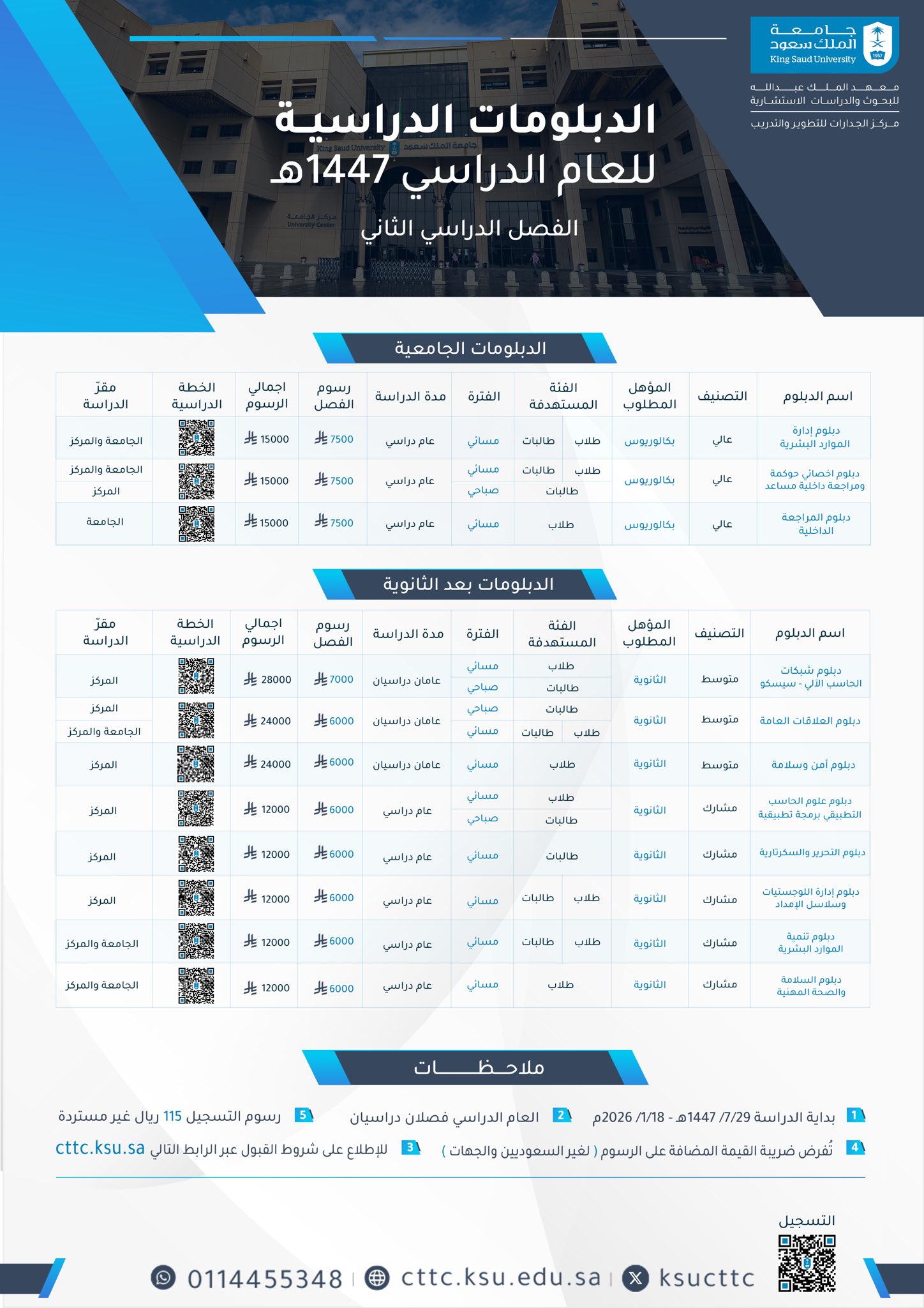 التفاصيل ورسوم دبلومات جامعة الملك سعود
